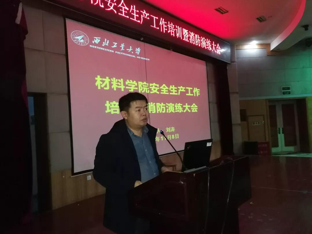 為了加強實驗室安全生產工作管理,提高學院師生的消防安全意識和應急技能,11月8日下午14:30,西北工業(yè)大學材料學院在航空樓D座環(huán)形報告廳舉辦實驗室安全生產工作培訓暨消防演練大會。培訓會請到了陜西科儀科技有限公司安全產品產品經理劉濤做精彩報告。保衛(wèi)(公安)處消防科許磊、胡濤、邵遠征、材料學院各實驗室安全負責人、全體一年級碩士和博士研究生以及近一年來新入職教職工參加大會。材料學院副院長林鑫主持會議。