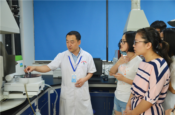 各位老師詳細(xì)說明實驗室的工作流程,樣品前處理的方法及目的。介紹了各種儀器的使用原理及可承擔(dān)的檢測任務(wù),如何對儀器進(jìn)行區(qū)分,結(jié)合現(xiàn)場演示幫助大家更好的理解。同學(xué)們興致勃勃,對這些在校時熟悉或陌生的檢測儀器表示出濃厚興趣,積極和講解老師學(xué)習(xí)交流。