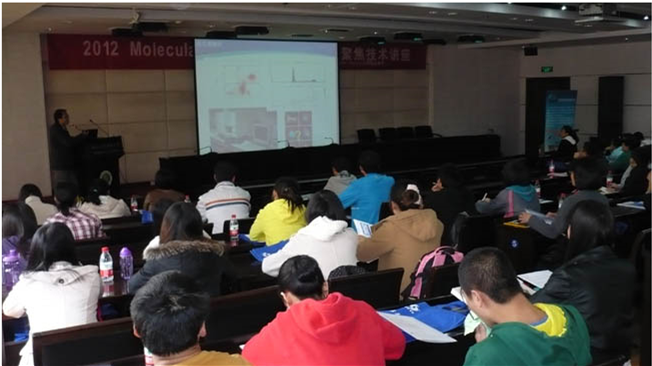 2012年4月12日下午我公司攜手世界500強企業(yè)Danaher Group 旗下的美國Molecular Devices公司在西北農林科技大學國際交流中心207會議室成功舉辦了關于“2012 Molecular Devices現代生物學焦點技術講座”的專題研討會,該講座主要介紹了高內涵篩選技術的主要原理和在生物學研究中的主要應用,展示了高內涵技術的強大潛力,并結合Molecular Devices公司的高內涵篩選設備,展示了生物學研究中高內涵篩選技術的最新應用進展。(高內涵篩選技術(HCS)即對每個細胞進行多通道、多靶點的熒光掃描檢測,由成像技術捕獲圖像信息后,經專用分析系統(tǒng)進行多指標在線分析,最終高效率地定量獲取藥物或外界刺激對細胞作用的綜合生物學評價。目前,高內涵篩選系統(tǒng)已經廣泛應用于生物學的研究和生物活性物質/藥物的篩選,極大的加快了藥物篩選和生物研究的速度。)