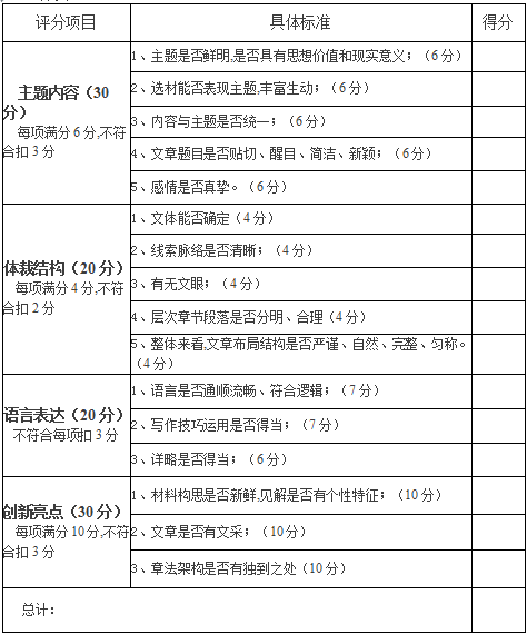 4、要求:進(jìn)入決賽的作品希望公司所有員工進(jìn)行閱讀瀏覽,參考評(píng)選標(biāo)準(zhǔn)進(jìn)行評(píng)選,詳見(jiàn)附件“評(píng)分標(biāo)準(zhǔn)”