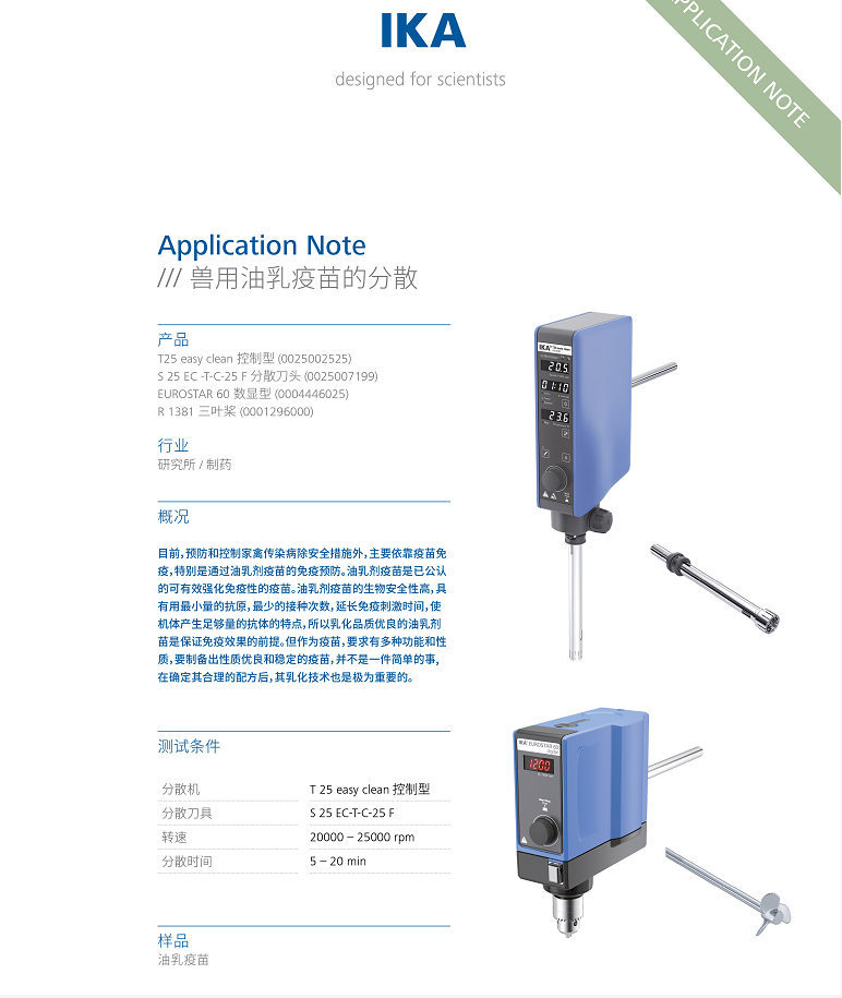 IKA新一代T 25 easy clean control分散機(jī)可監(jiān)控疫苗乳化過程的溫度變化,特別適合溫敏性樣品的分散乳化需求。